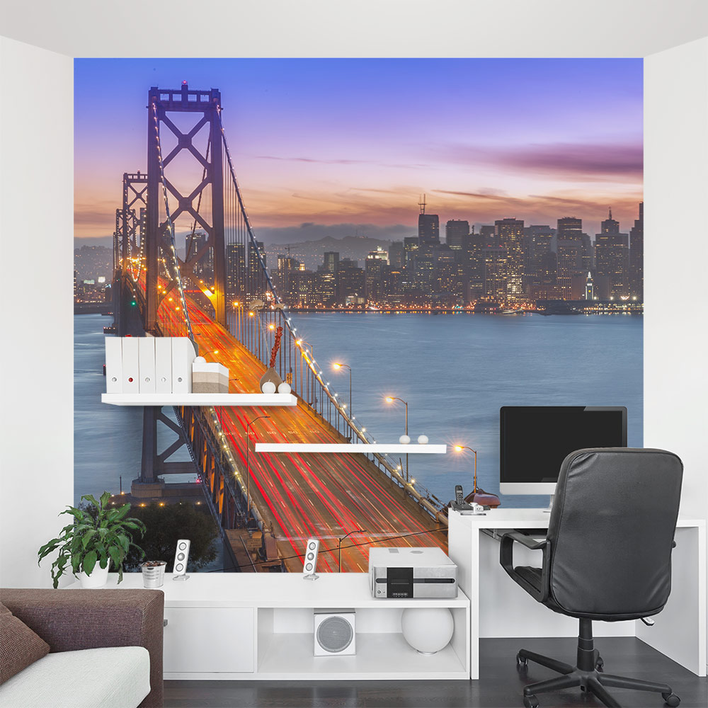 Did you leave your heart in San Francisco? This San Francisco Bay Bridge & Skyline mural is great for an accent wall or the entire room. These removable and re-positionable mural panels are an easy way to decorate any wall in your home, nursery or office.