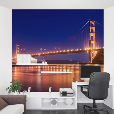 Beautiful long exposure photo wall mural of the iconic San Francisco Golden Gate Bridge. Great for an accent wall or the entire room. These removable and re-positionable Golden Gate Bridge at Night wall mural panels are an easy way to decorate any wall in your home, nursery or office.