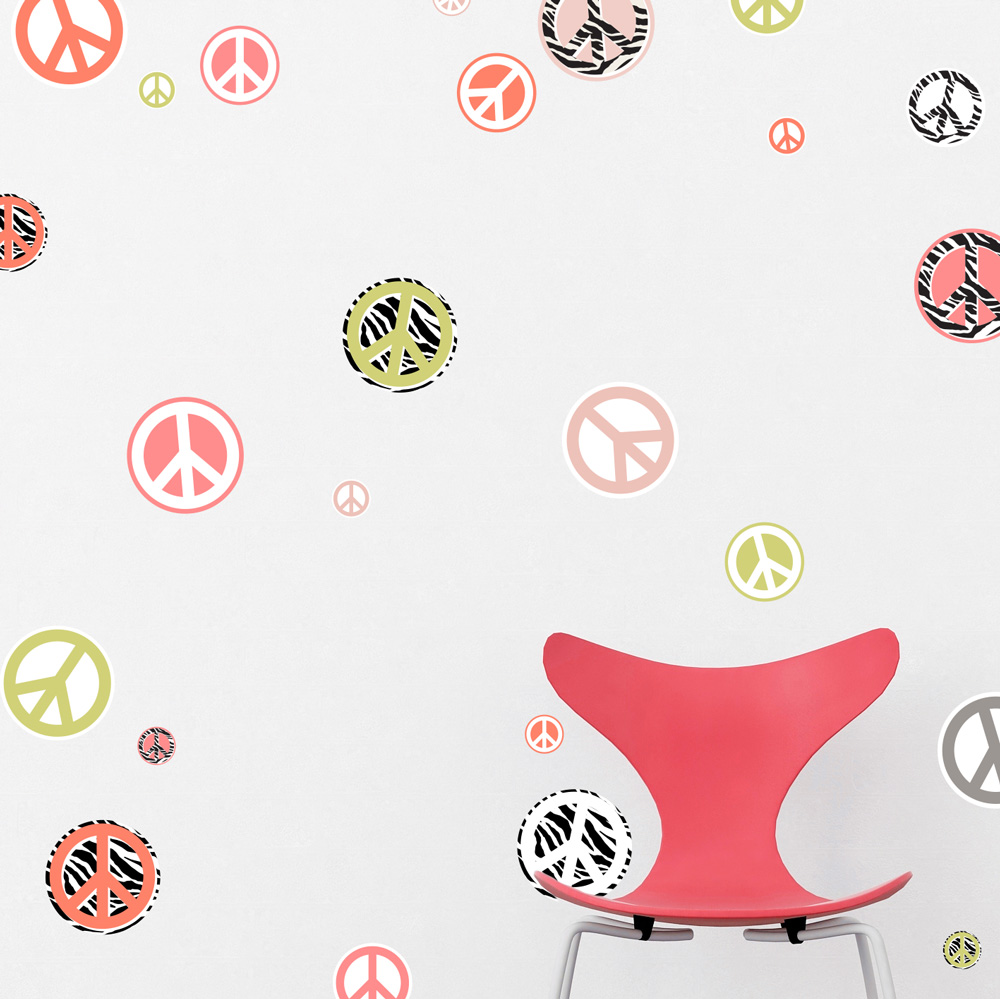 Liven up any space with our Peace Signs Printed Wall Decal set! Fun colors and zebra print make these peace signs pop.