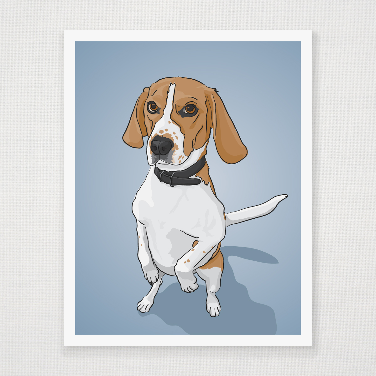 This custom digitally illustrated print from Diesel & Juice features a standing beagle dog.