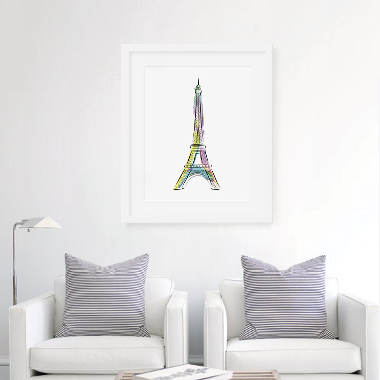 Let your thoughts wander with this beautiful Eiffel Tower watercolor-esque art print.