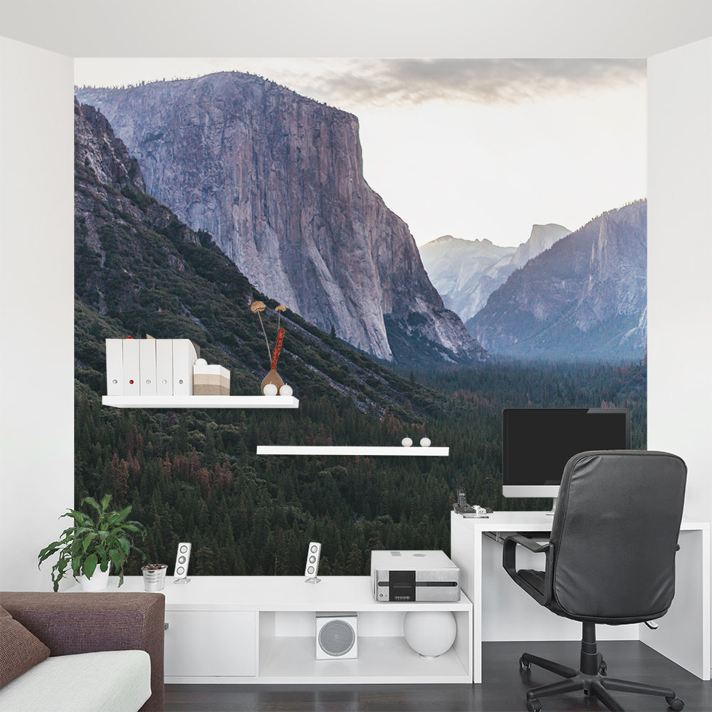 A photo taken at Tunnel View in Yosemite National Park. These removable and re-positionable mural panels are an easy way to decorate any wall in your home, nursery or office.